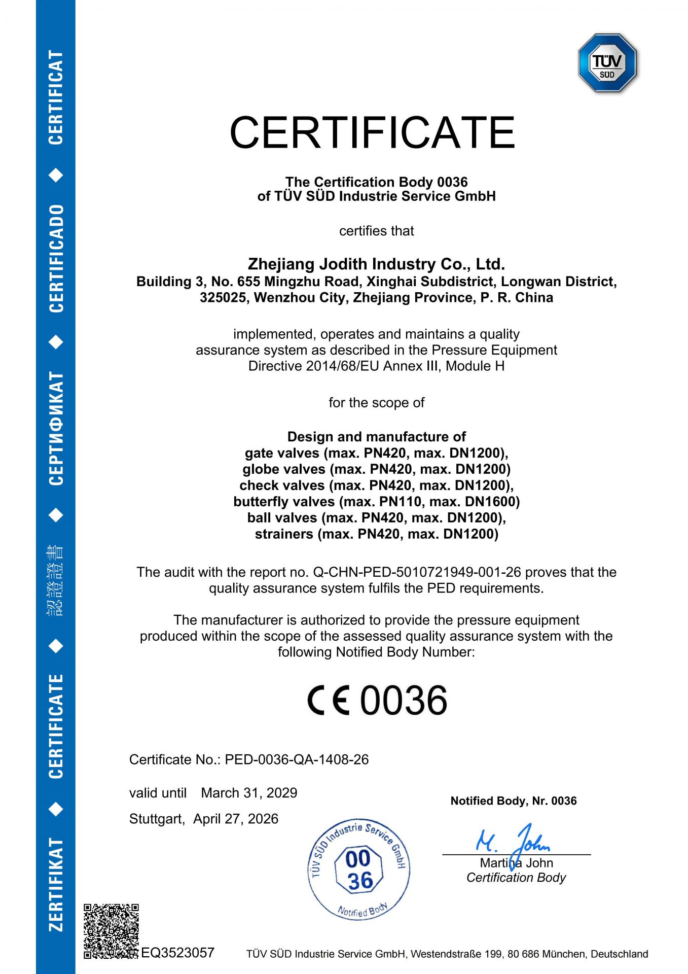 Jodith is a manufacturer of all kinds of industrial valves, such as gate valve, globe valve, check valve, ball valve, butterfly valve, strainer, flange, and accessories. We have ISO9001, CE, PED, EAC, CLASSIFIACTION IAC and national patents. We have more than 80staff, covers 3000square meters, invests more than 8million USD, keeps more than 300tons stock, ranges from 1/2″-48″/DN15-DN1200 with pressure class1500-class2500LB/PN6-PN420.